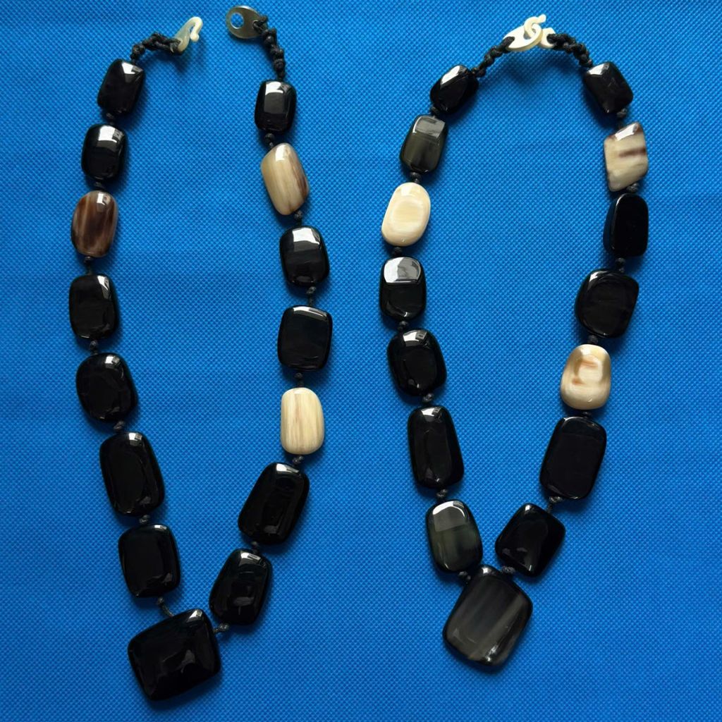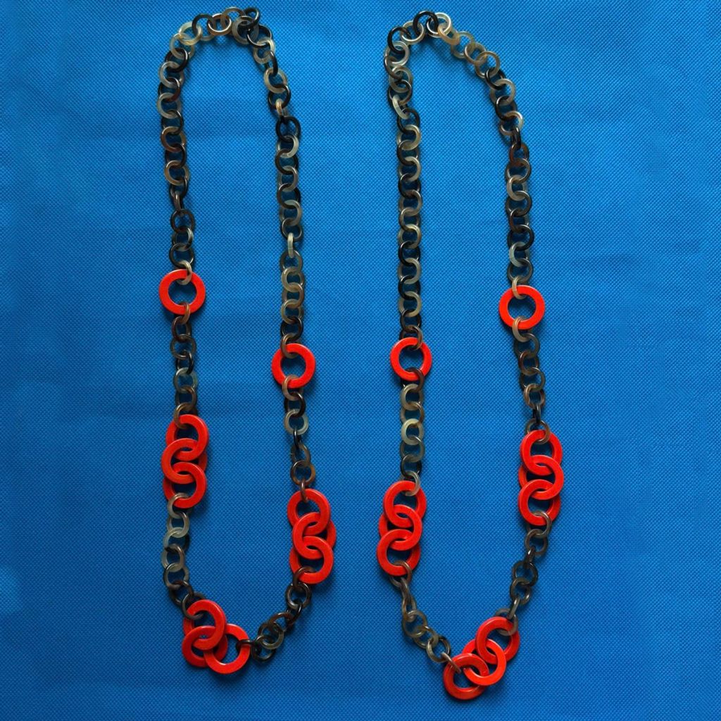 We always have a strong selection of jewellery in store sourced from all over the world for their handmade quality and originality. This small selection feature amber, coral, horn, and enamel – just perfect for summer.