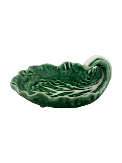 This Cabbage Plate measures 19cm across, is decorated in green with cream striations that make it look like, well, a cabbage… It is ideally suited as a large side or lunch plate.