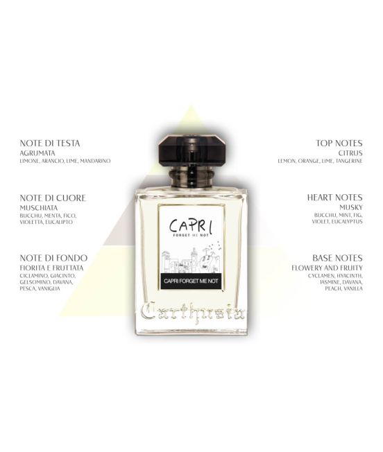 In the name a promise “Capri Forget Me Not”: the beautiful Capri of yesteryear that preciously inspired this fragrance.