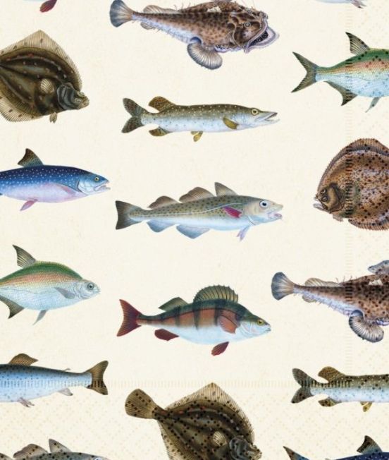 A pack of 20, 3-ply fishes design paper napkins featuring a vintage design, 33cm square, brought to you from Sweden by Abrahams Store.